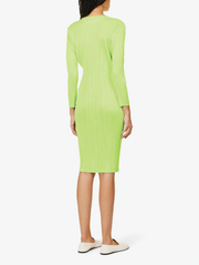 Pleats Please Issey Miyake Neon Green Long Sleeve Dress