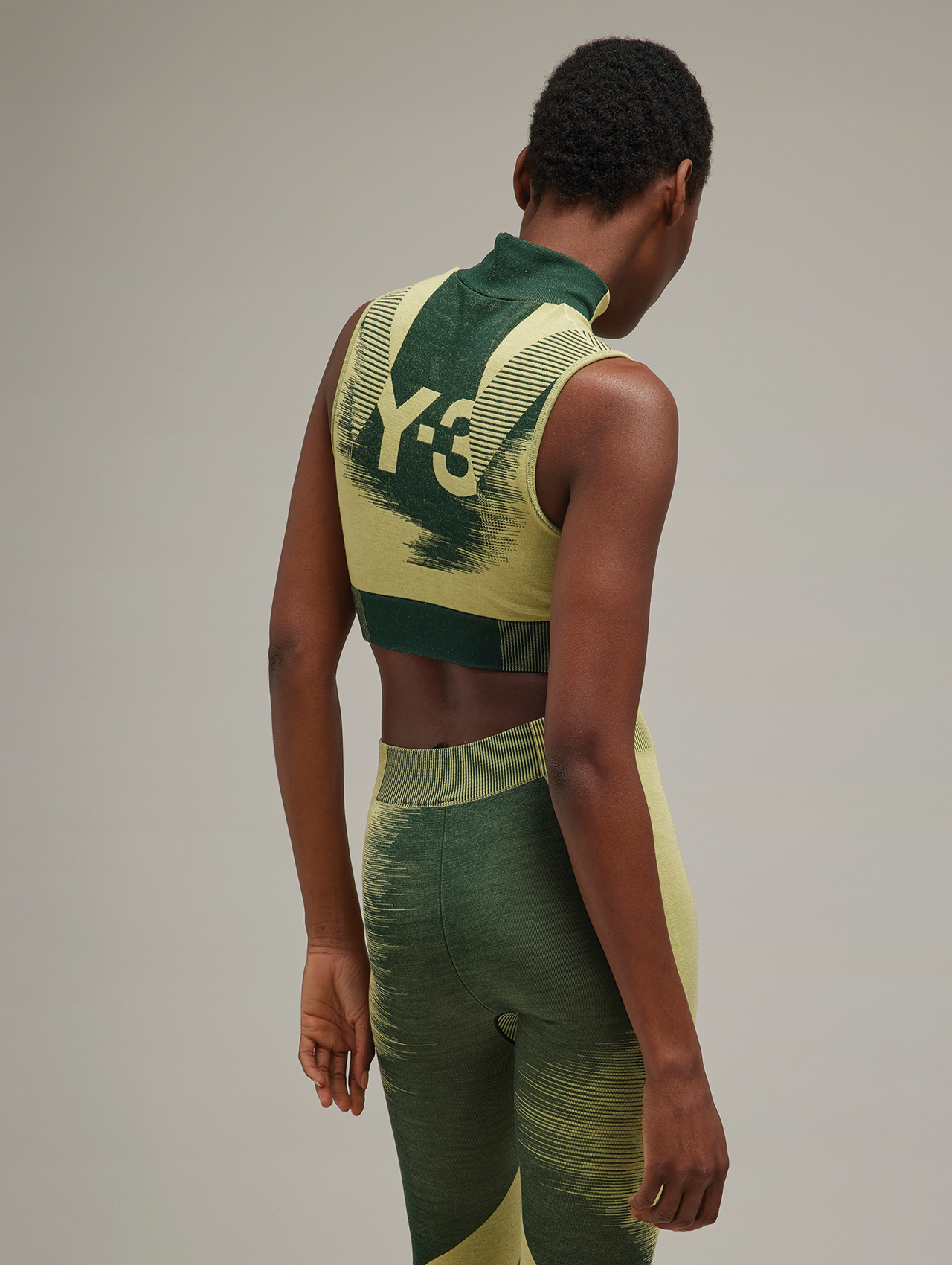 The Y-3 Engineered Knit Crop Top supports movement with a tight, compressive fit. Breathable and moisture-wicking, it comes together with a wool and nylon build. The distorted knit design is finished with a bold, engineered Y-3 logo.