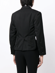 “Return to the beginning” is the mantra for Kawakubo’s Fall Winter 2023 collection. “I wanted to use fabrics that existed without thinking about making proper patterns, just basic patterns, free”, said Rei via translation from Adrian Joffe. For CDG CDG, her signature aesthetic is distilled to its original essence – bold shapes with unexpected detailing in primary colours. As difficult to find as the clandestine designer herself, the ‘Comme Des Garcons Comme Des Garcons’ line is a distillation of the forward-looking CDG spirit, and is fiercely protected by Kawukubo. A meeting of purism and practicality in a crisp palette of black, navy and white, CDGCDG is only available at a handful of outposts around the world.
