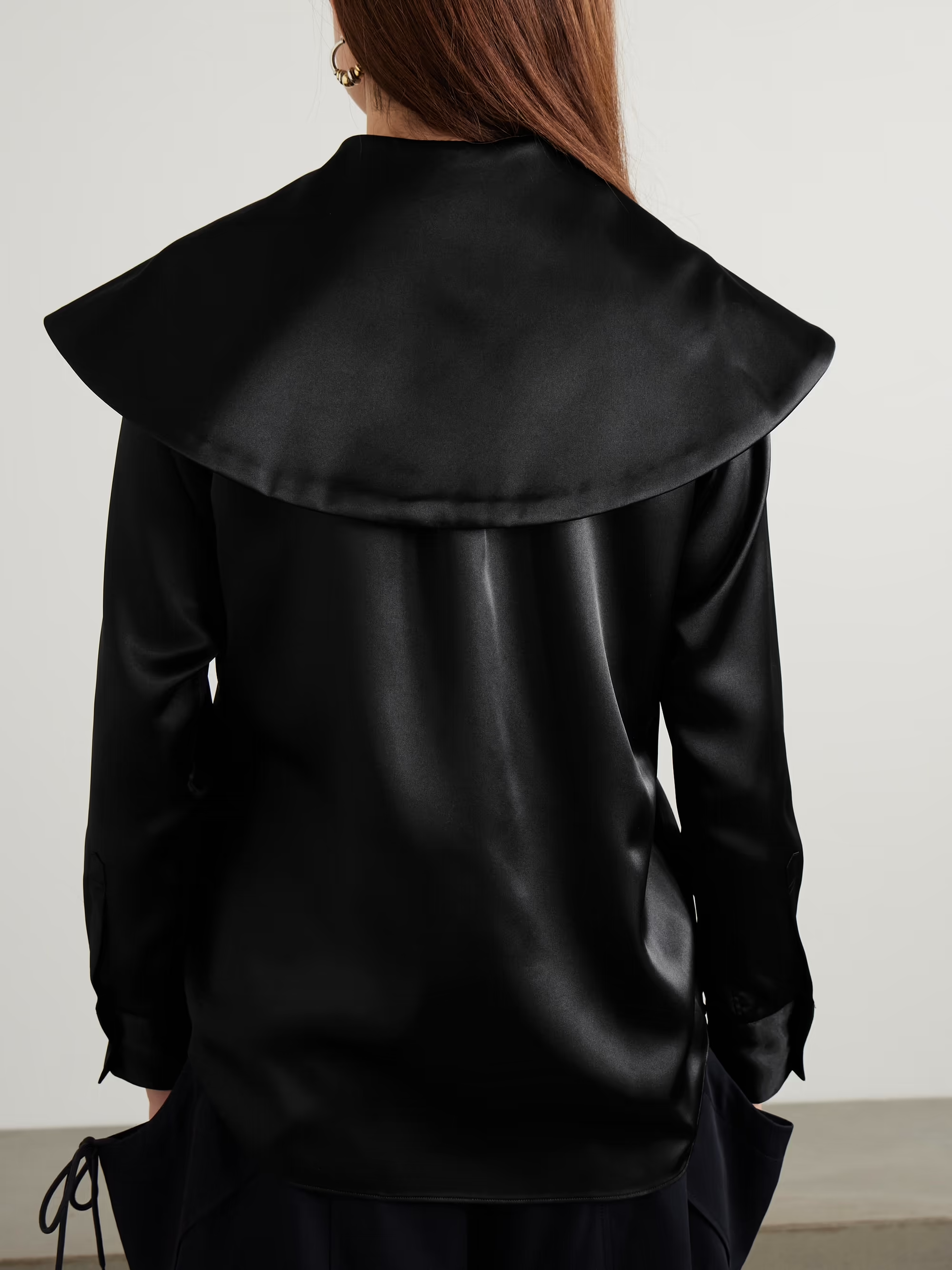 In Uncertain Future, Rei Kawakubo moves beyond last season’s anger, embracing the possibility of hope through silhouettes that balance precision with fluidity. This satin cut hem blouse, with its architectural curves, embodies that shift—offering both discipline and movement, as if creating space for change. As difficult to find as the clandestine designer herself, the ‘Comme Des Garcons Comme Des Garcons’ line is a distillation of the forward-looking CDG spirit, and is fiercely protected by Kawukubo.