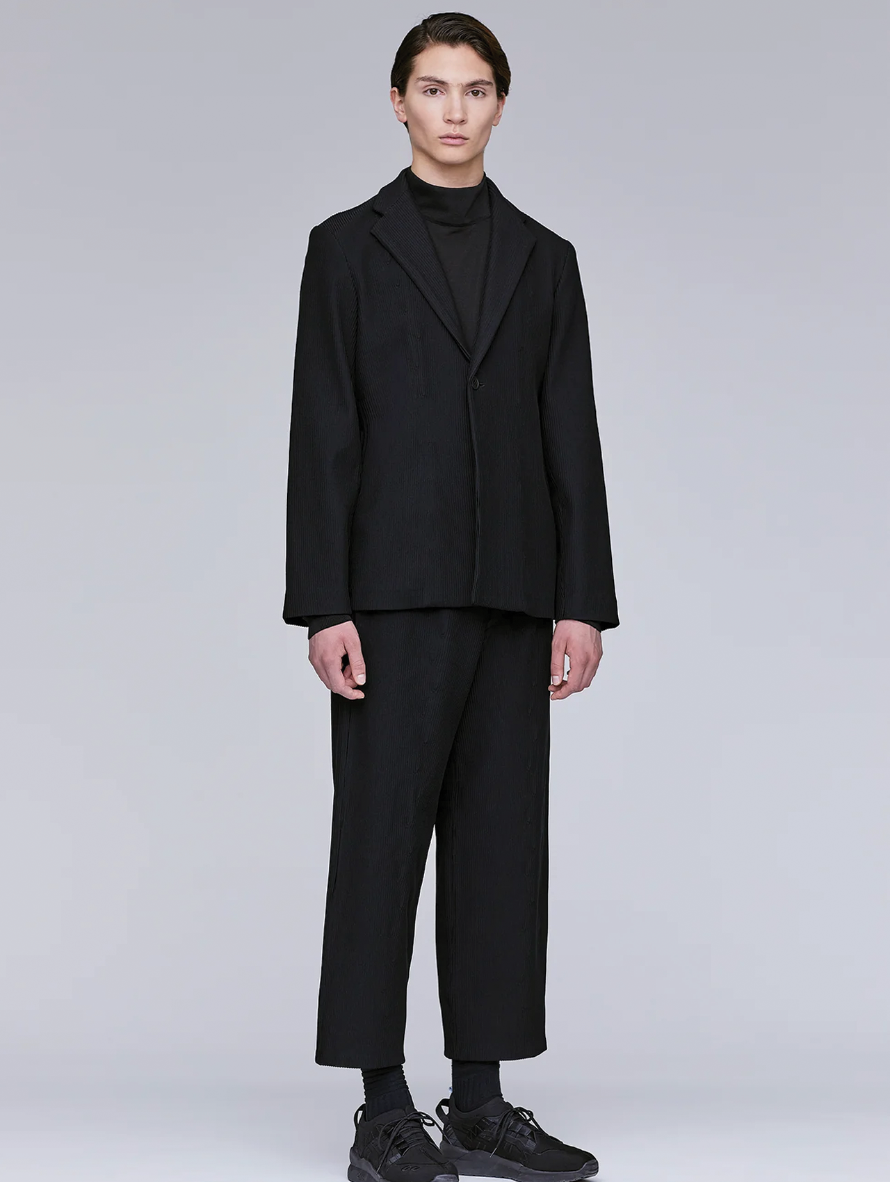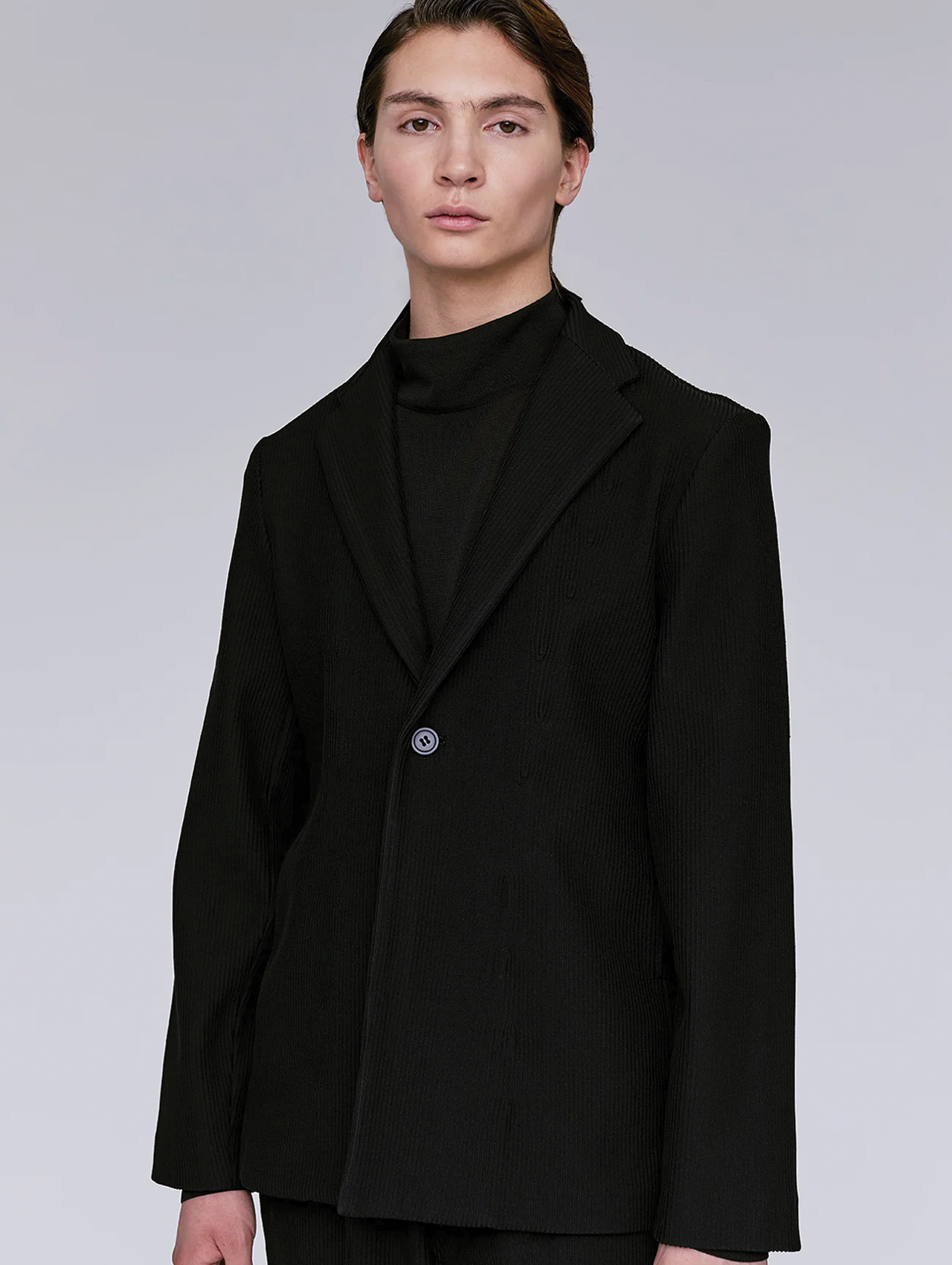 A relaxed jacket in a refined knit fabrication that suits all occasions. Japanese designer Yusuke Takahashi created Clothing For Contemporary life after 6 years of leading the design team at Issey Miyake Men. Based around computer program-aided knitwear, the CFCL collection is intended to serve as the Swiss army knife of the wardrobe – offering versatile, technology-driven knitwear that’s as chic as it is practical. Using a 3-D knitwear technique that minimizes waste, CFCL is the first Japanese fashion label to attain B Corporation certification.