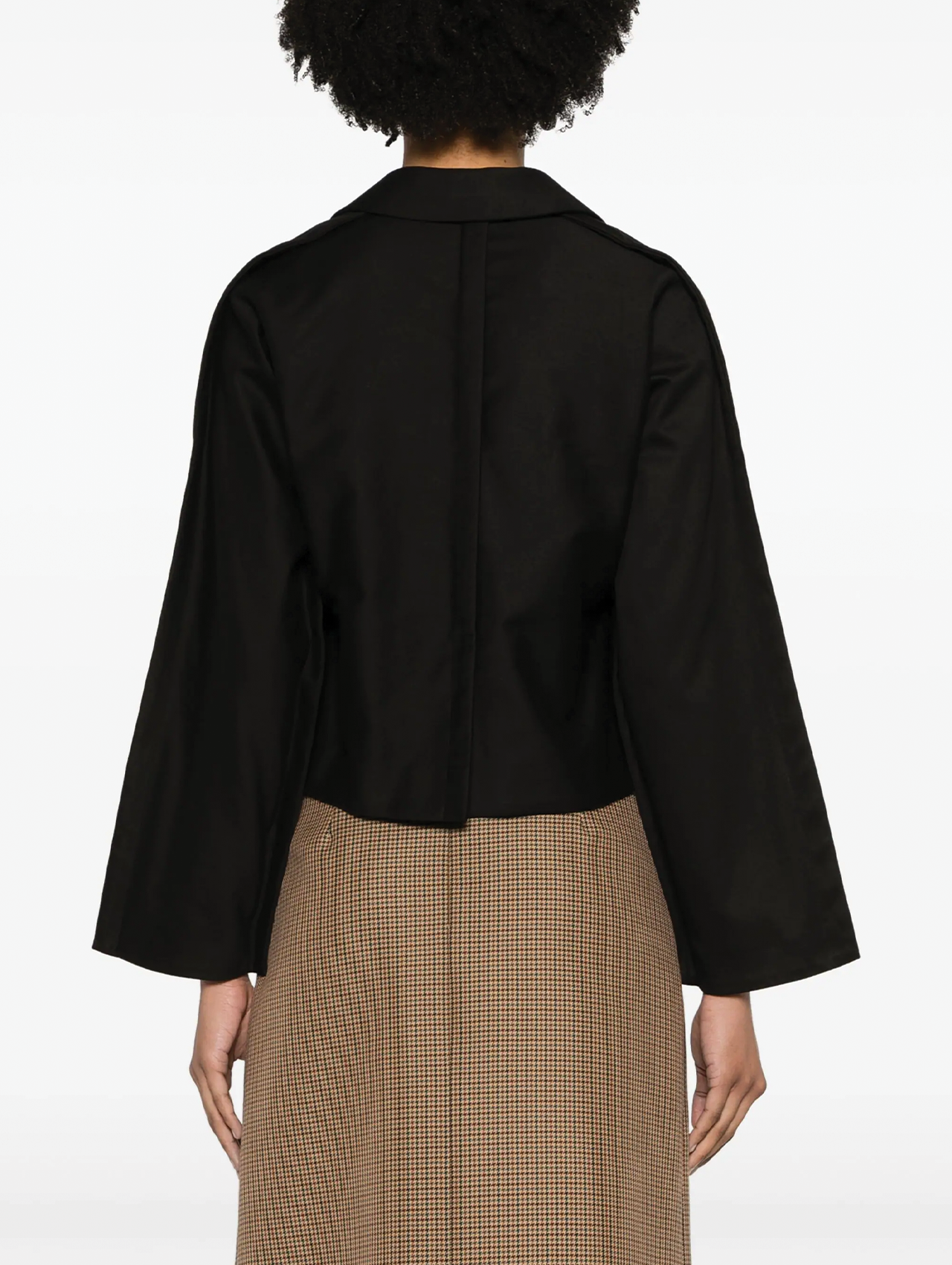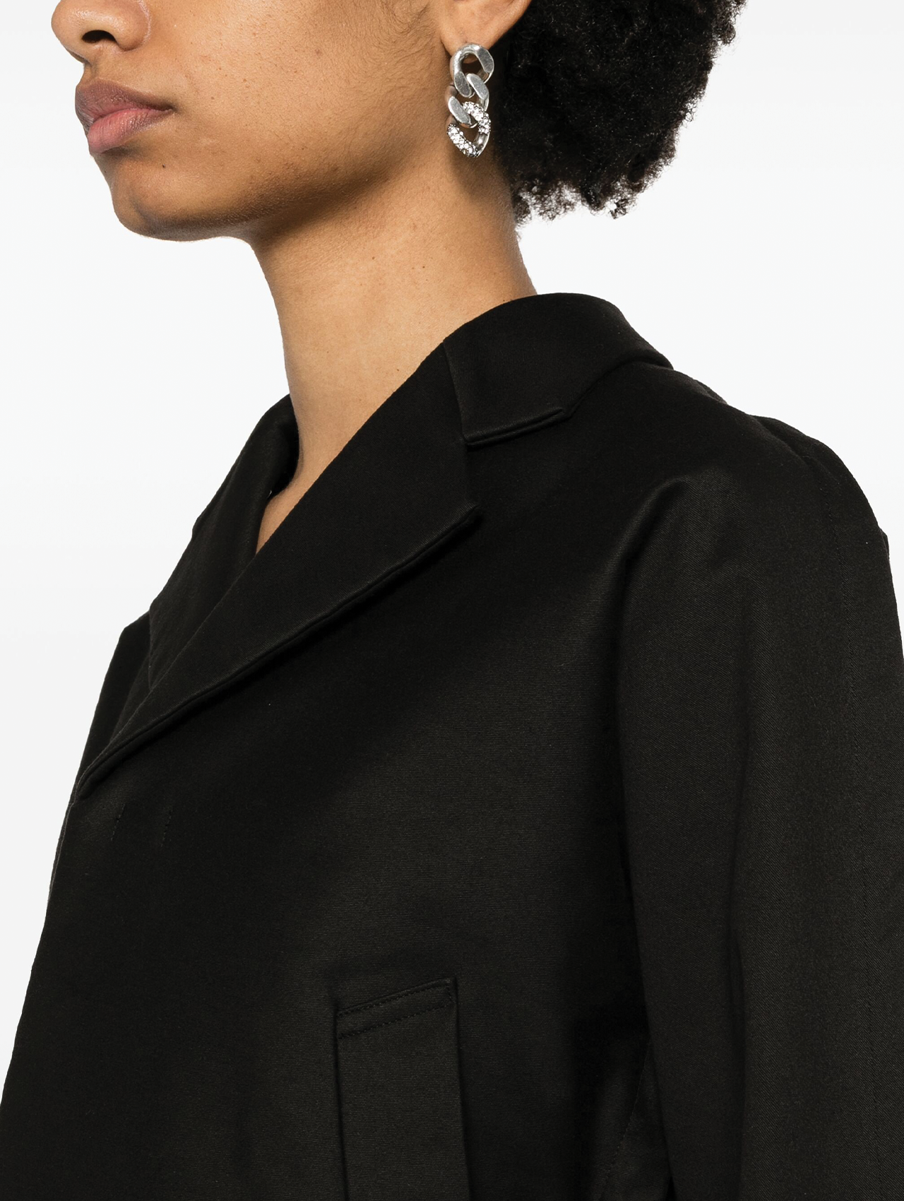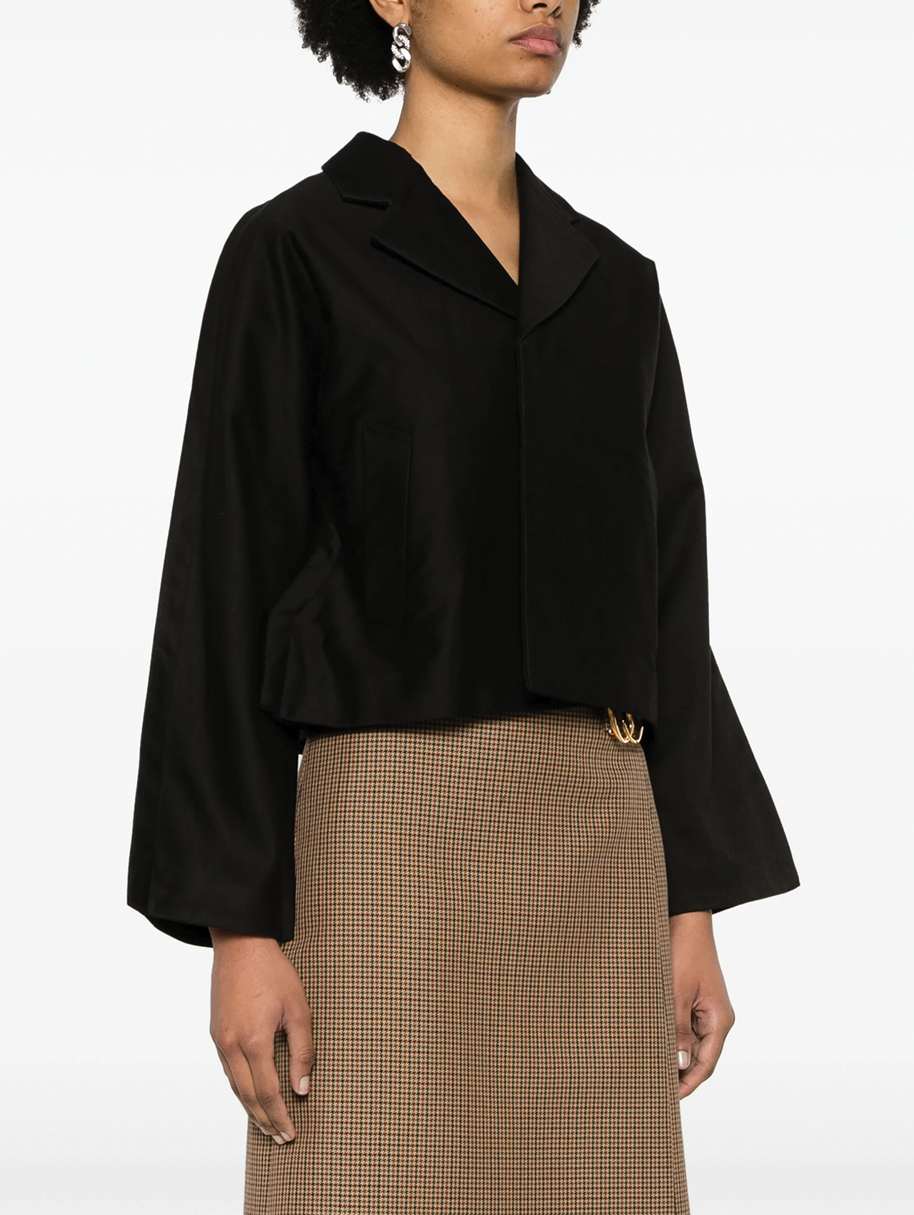 “I hope to present a light and bright future”, says Rei Kawakubo, in stark contrast to the sorrow themed collections of the past year. She strays from her archetypal blacks in favour of fierce colour, delivering grandiose shapes at mass volumes and textural trompe l’oeils. With it's flat, kimono-inspired construction and flared shape, this jacket is a call-back to the cut-out doll silhouettes of the iconic Comme Des Garçons Fall Winter 2012 collection.