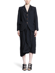 “I hope to present a light and bright future”, says Rei Kawakubo, in stark contrast to the sorrow themed collections of the past year. She strays from her archetypal blacks in favour of fierce colour, delivering grandiose shapes at mass volumes and textural trompe l’oeils. With it's flat, kimono-inspired construction and flared shape, this jacket is a call-back to the cut-out doll silhouettes of the iconic Comme Des Garçons Fall Winter 2012 collection.