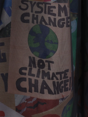This Comme des Garçons Printed Pleated Skirt embodies the brand’s avant-garde approach to fashion. Featuring bold pleats and a striking "SYSTEM CHANGE, NOT CLIMATE CHANGE" statement, the design reflects Rei Kawakubo’s conceptual vision challenging societal norms through fashion.