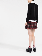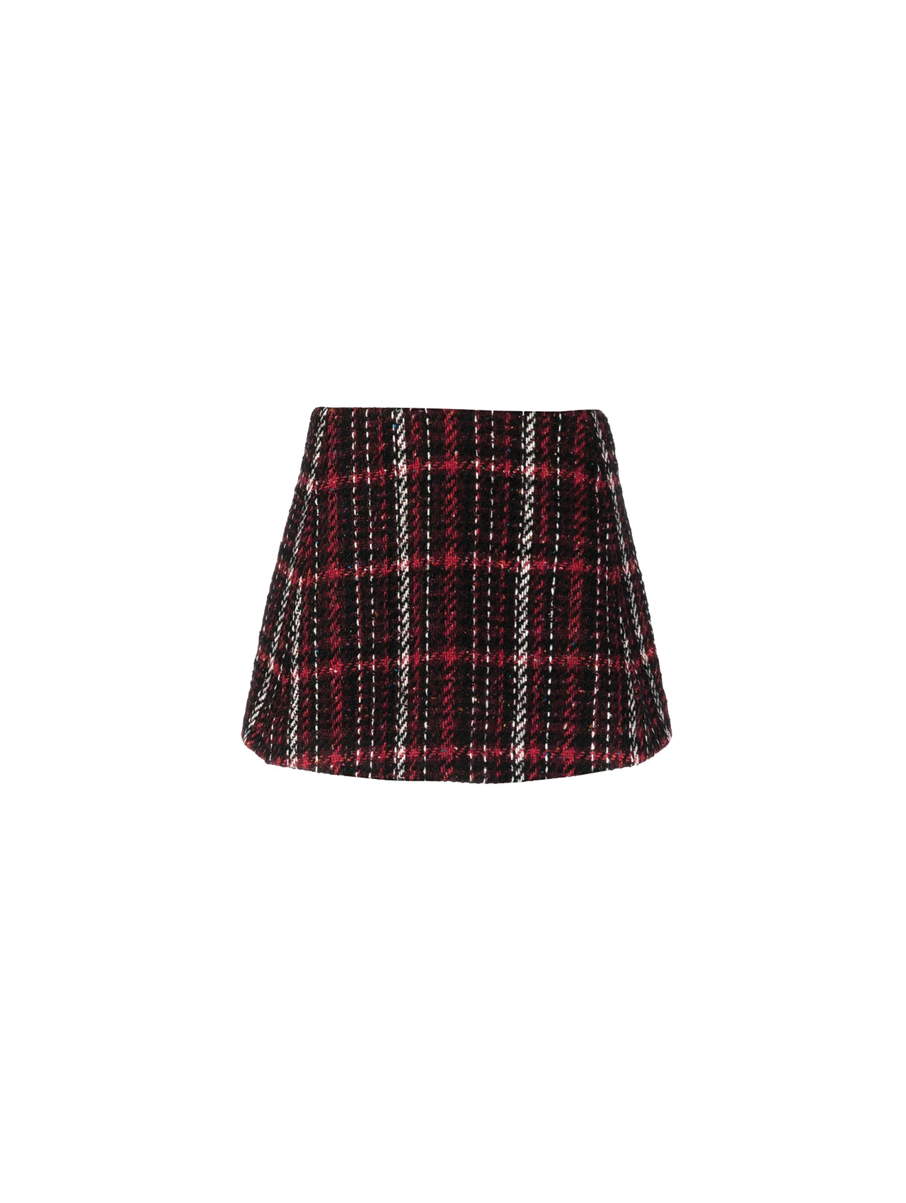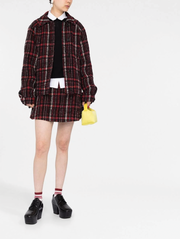 For this collection, the friends and muses of Marni were each asked to reflect on what they considered to be a ‘classic’ garment. The myriad of different responses showed that fashion is deeply personal and sentimental, an idea that Risso sought to evoke in the delicately handcrafted nature of each piece. The pieces that were sent down the runway were distressed, crumpled, and handstitched together as if they were lovingly mended hundreds of times. This chic red tweed mini skirt is discreetly lined with a hand-painted floral print - designed to be a secret source of joy for the wearer.